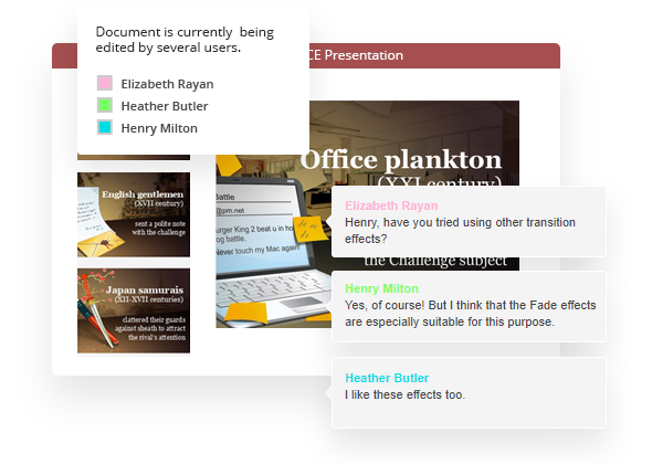 Create sophisticated presentations directly in your browser and without special software. Work with multiple people simultaneously and deliver presentations directly from your browser.