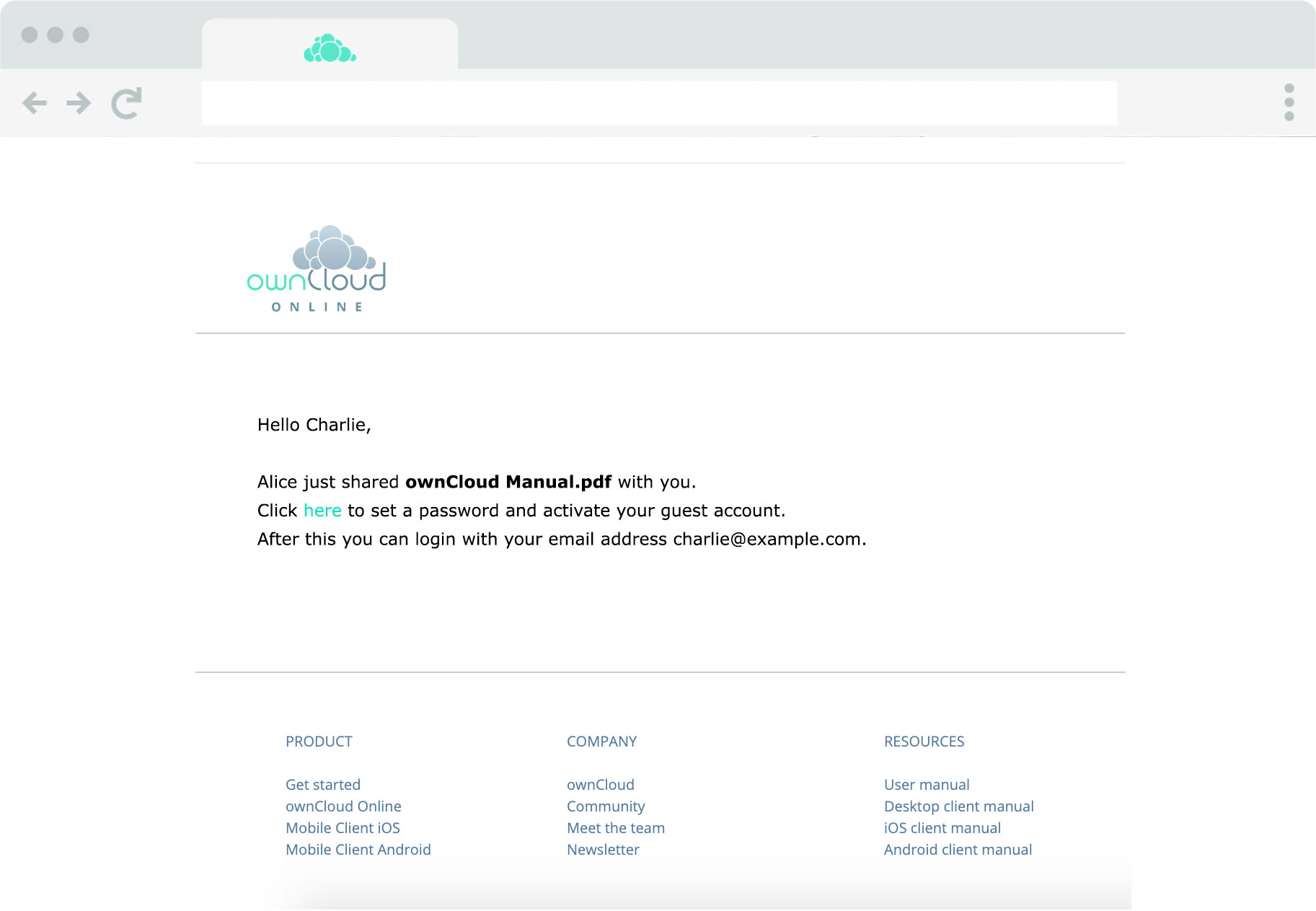 Charlie wird per E-Mail über die neu erstellte Dateifreigabe benachrichtigt (4).